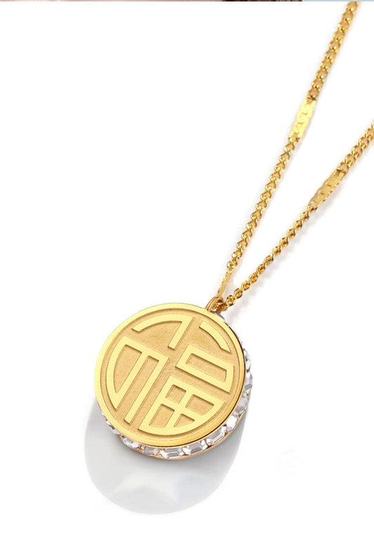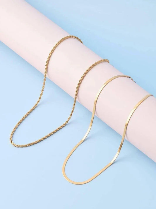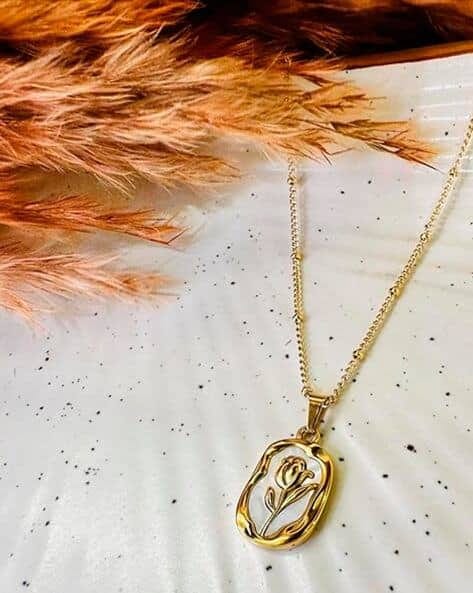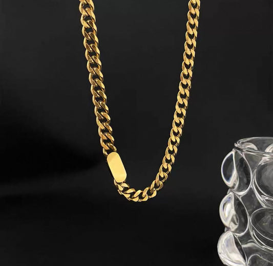 Stainless steel necklace with 18k gold plating, designed to be waterproof, tarnish-free, and color guaranteed for long-lasting brilliance and style.
